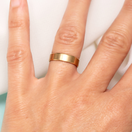 Aliança em ouro de 19,2 quilates com 4 mm de largura lisa. Tonalidade amarela e acabamento acetinado com pequeno friso no rebordo. Aliança com possibilidade de gravação e personalização. As alianças First Day são produzidas em Portugal com o selo de qualidade do Lugar da Jóia.