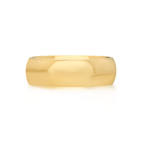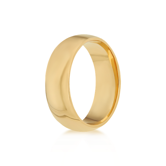Aliança em ouro de 19,2 quilates com exterior e interior amendoado, para maior conforto. 6 mm de largura e acabamento polido. Possibilidade de personalização.