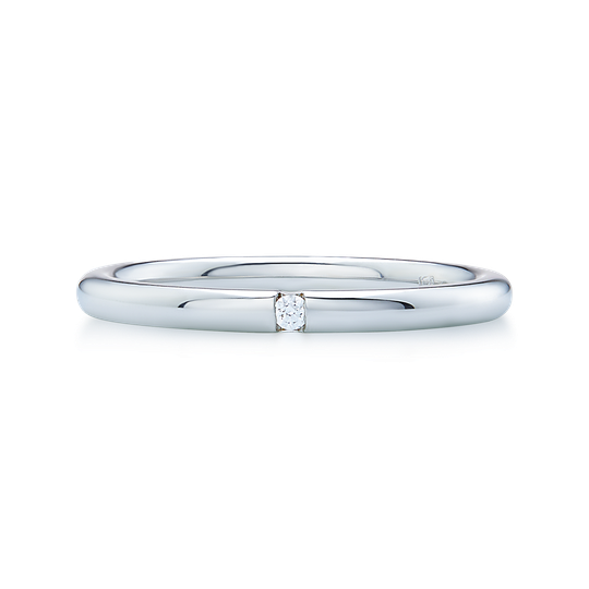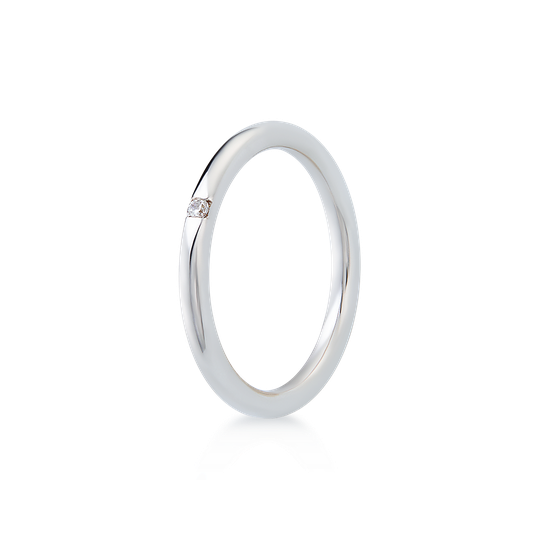 Aliança em ouro branco de 19,2 quilates com perfil interior amendoado, para maior conforto. Acabamento polido e pequena zircónia cravada. Possibilidade de personalização. Aliança de casamento subtil.