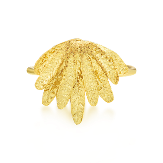 Anel em prata dourada com forma de asa. Anel ajustável.