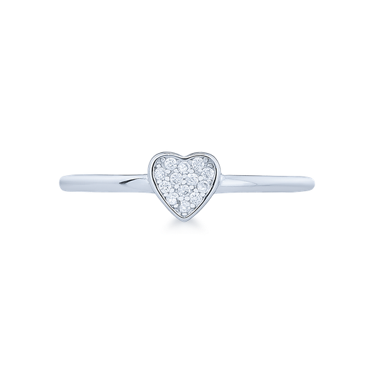 Anel em prata com coração com pequenas zircónias. Anel fino e discreto.
