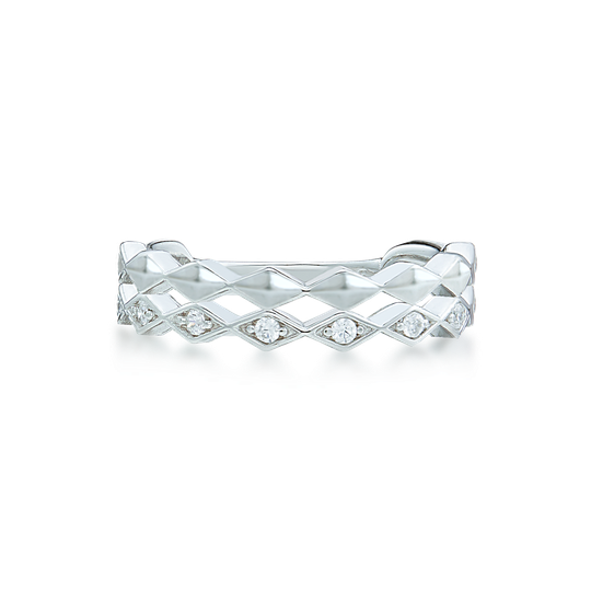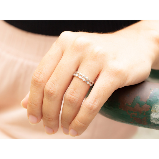 Anel em prata 925 com efeito duplo de finos tringângulos e uma das filas com zircónias incolores.