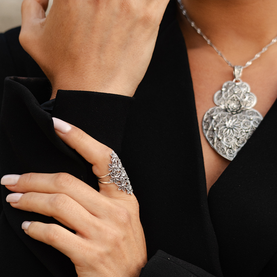 Resultado da aliança entre a tradição da Ourivesaria Portuguesa e o design contemporâneo, esta é uma jóia de filigrana para a mulher moderna.