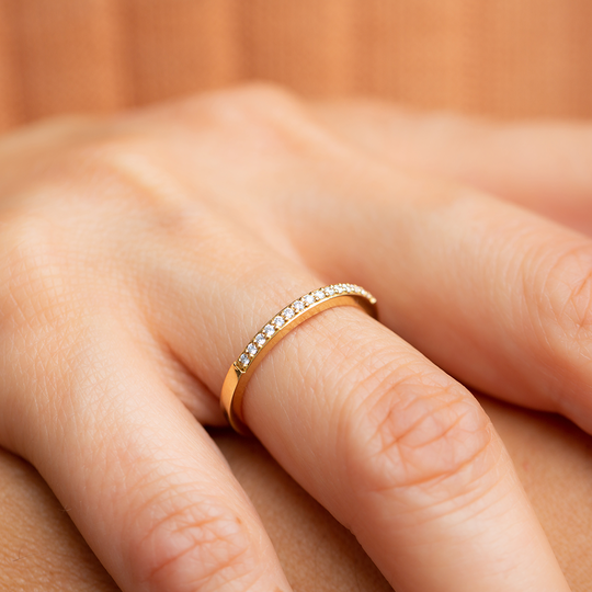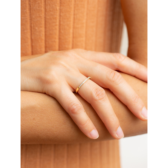 Anel em ouro de 19,2 quilates com 13 diamantes. Um anel de noivado estilo memória, uma escolha clássica.