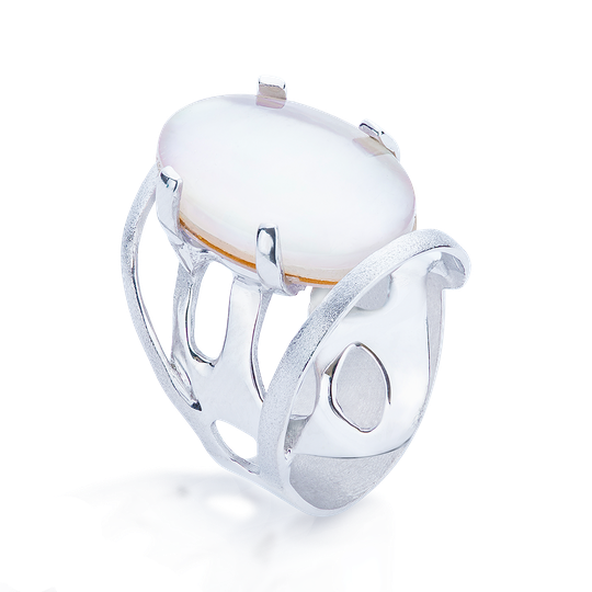 Anel prata com gema branca