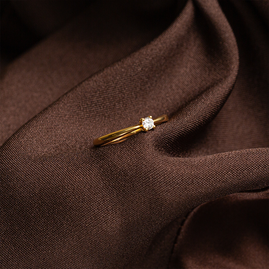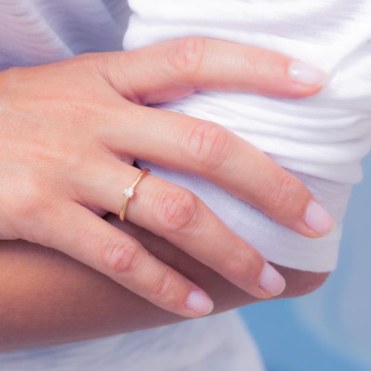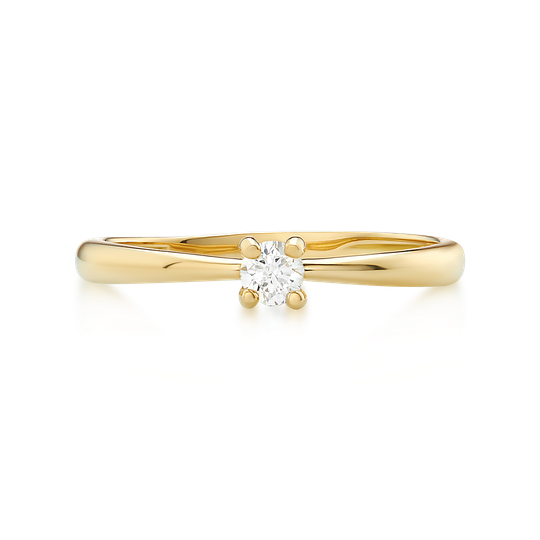 Anel de noivado em ouro amarelo de 19,2 quilates. Aro arredondado. Anel solitário com um diamante.