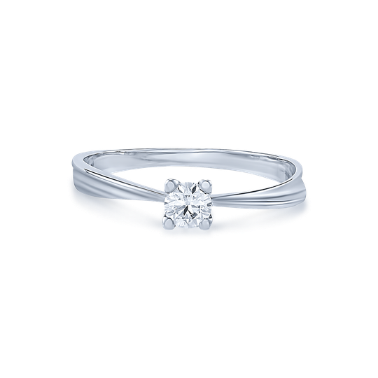 Anel solitário em ouro branco com um diamante. Uma jóia de design elegante e intemporal, que perpetua a magia e emoção do noivado.