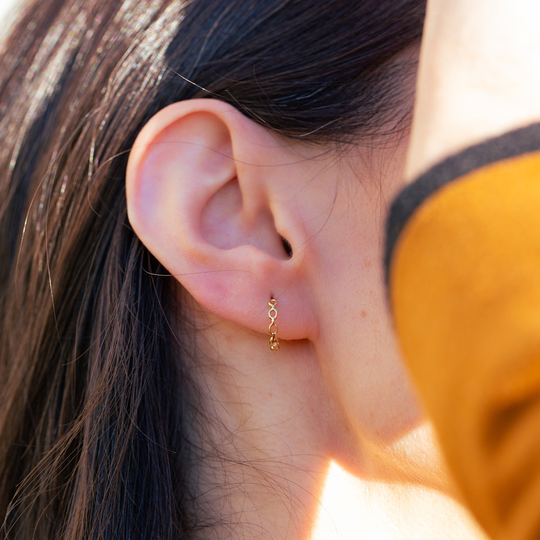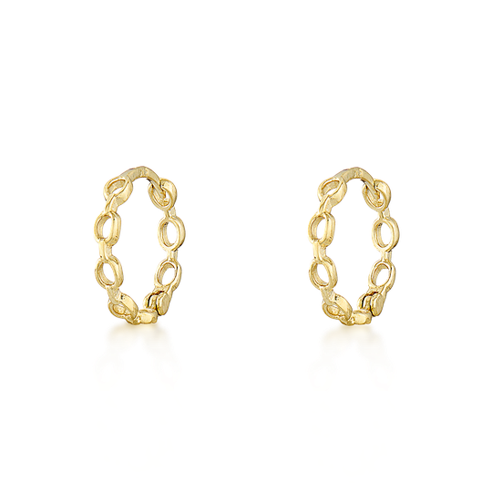 Com design inspirado em elos de corrente, estas argolas em ouro 9 kt combinam estrutura e elegância num estilo contemporâneo. Leves, versáteis e cheias de personalidade.