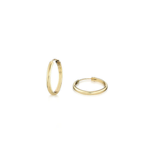 Argolas mini com perfil amendoado em ouro de 9 quilates. Com fecho de encaixe. Argolas perfeitas para usar a solo ou para combinar.