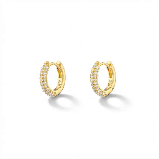Argolas ovais em prata dourada com pavé de zircónias. Um modelo clássico com brilho extra, ideal para usar todos os dias.