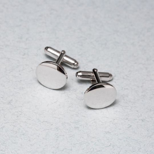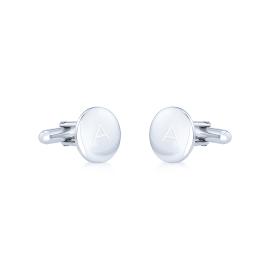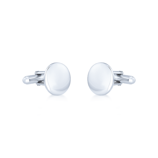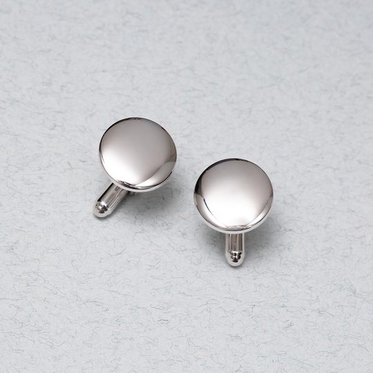 Botões de punho redondos de superfície arredondada em prata 925 polida. Uma jóia imprescindível em datas especiais, como casamentos e outras celebrações. Fáceis de colocar e de fabrico português. Podem ser personalizados com um ou dois caracteres, como iniciais, por exemplo.