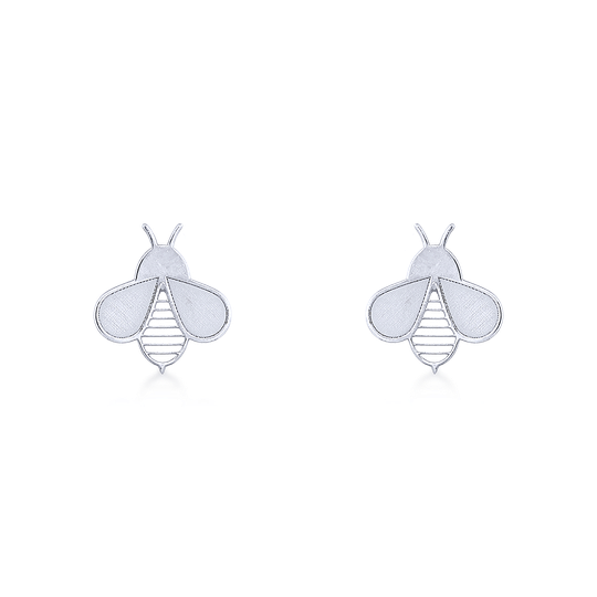 Brincos em prata em forma de abelha com cuidadoso detalhes de riscas. Pequenos brincos de espeque. Um presente amoroso.