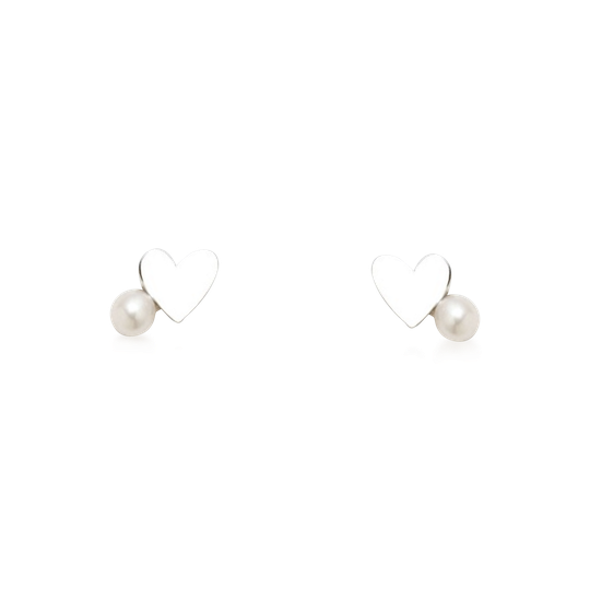 Brincos em prata em forma de coração com pequena pérola. Brincos pequenos com fecho de espeque.