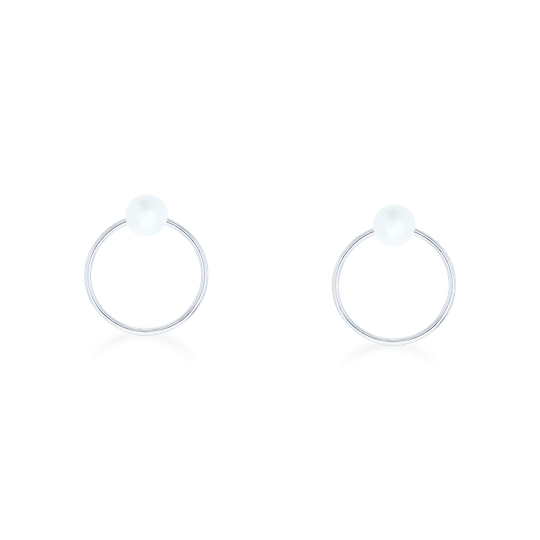 Brincos em prata em forma de argola com pérola. Inspirados no brilho, luminosidade e pureza do tom níveo.