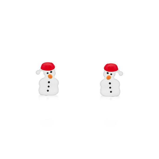 Brincos em prata e esmalte branco e vermelho com fecho de espeque. Adorável boneco de neve para a época festiva. Para criança e adulto.