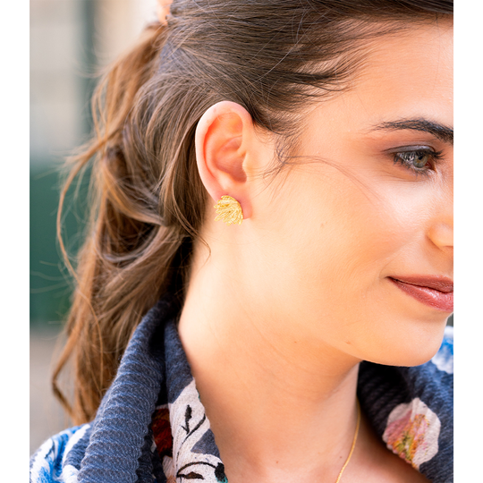 Brincos em prata dourada em forma de asa. Brincos com fecho de espeque.