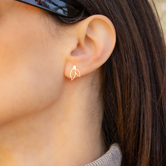 Brincos de espeque em prata dourada com acabamento polido. Brincos Orgânico da colecção Nativa da Dlight. A Dlight é uma marca de design original do Lugar da Jóia com uma embalagem sustentável que contém sementes de camomila para plantar.