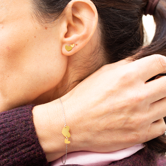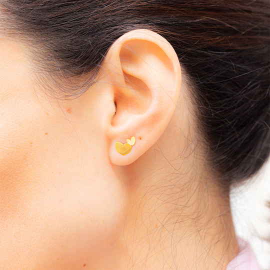 Brincos em prata 925 dourada com dois corações: o maior polido e o mais pequeno mate. Brincos pequenos com fecho de espeque. Uma jóia Dlight que derrete corações.
