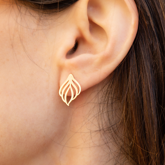 Brincos de espeque em prata dourada com acabamento polido. Brincos Silvestre da colecção Nativa da Dlight. A Dlight é uma marca de design original do Lugar da Jóia com uma embalagem sustentável que contém sementes de camomila para plantar.