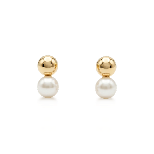 Brincos em prata dourada com pérola de água doce e esfera polida. Um modelo clássico e elegante, perfeito para um look sofisticado.