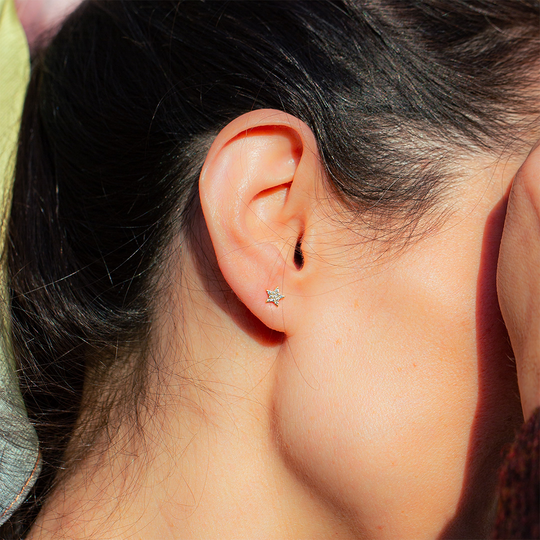 Pequenos brilhos que fazem toda a diferença. Estes brincos em ouro 19,2Kt com forma de estrela são cravejados com zircónias incolores, perfeitos para iluminar o seu dia com um toque de leveza e sofisticação.