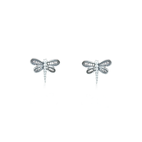 Brincos de filigrana em prata em forma de libelinha. Brincos pequenos com fecho de espeque.