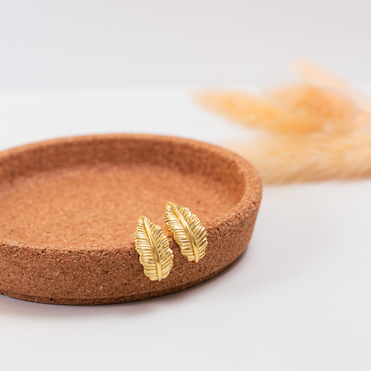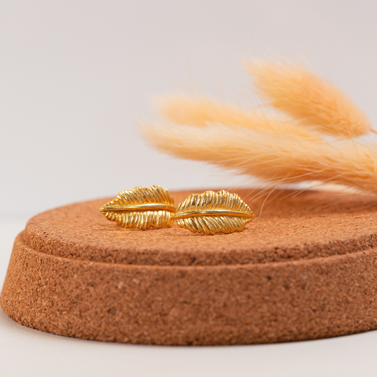 Delicados e cheios de textura, estes brincos em forma de folha são feitos em prata dourada. Uma homenagem à natureza, ideal para quem procura leveza, beleza e significado em cada detalhe.