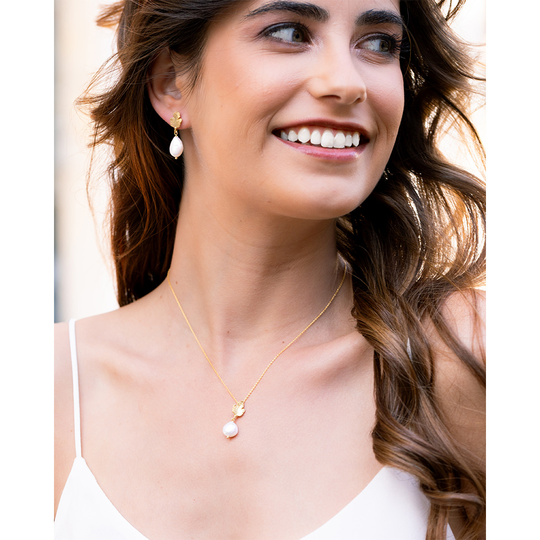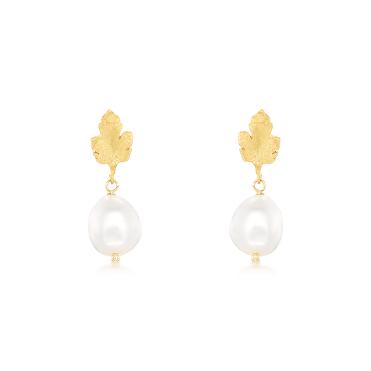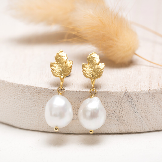 Brincos folha e pérola