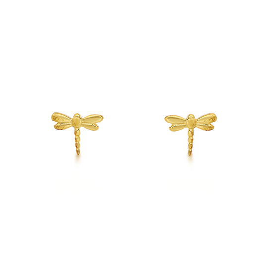Brincos pequenos em prata dourada em forma de libelinha. Apertam com fecho de espeque.