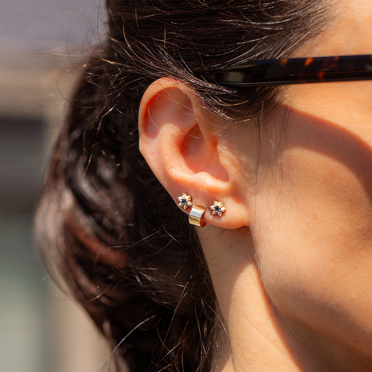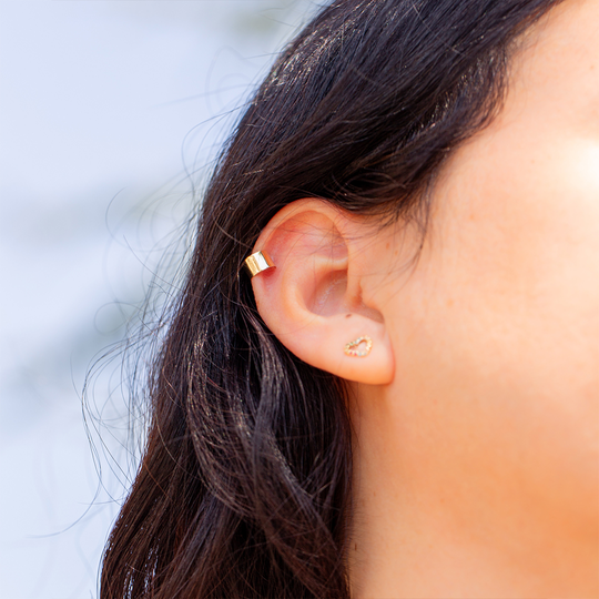 Brincos mini de meia argola em ouro 9 quilates — delicados e versáteis para todos os dias.