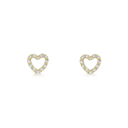 Brincos em ouro de 9 quilates em forma de contorno de coração com zircónias. Fecho de espeque.