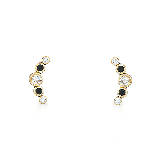 Brincos em ouro de 9 quilates de forma alongada com gemas pretas e zircónias incolores. Fecho de espeque.
