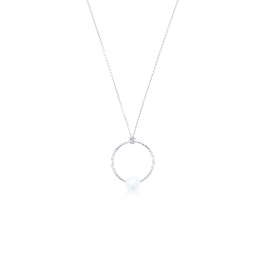 Colar em prata com pendente em forma de argola com pérola. Inspirado no brilho, luminosidade e pureza do tom níveo.