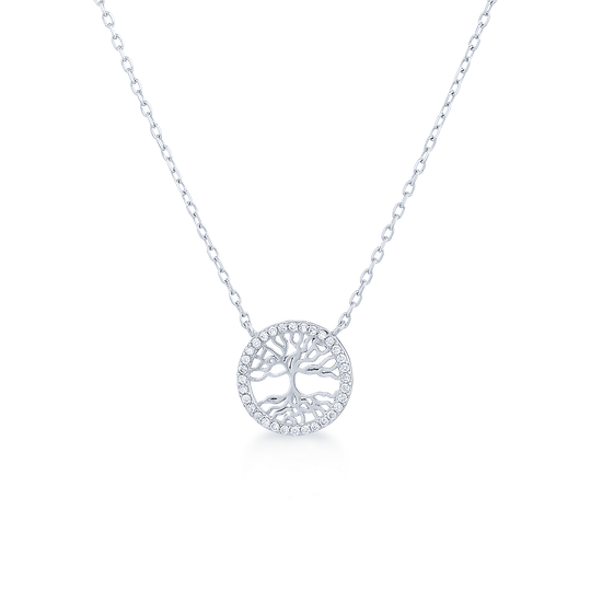 Símbolo de força e crescimento, este colar com árvore da vida e aro cravejado de zircónias combina significado e elegância.