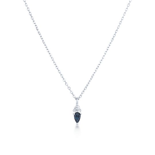 Colar em prata com medalha minimal com zircónia incolor redonda e zircónia azul escuro em forma de gota. Fio ajustável.
