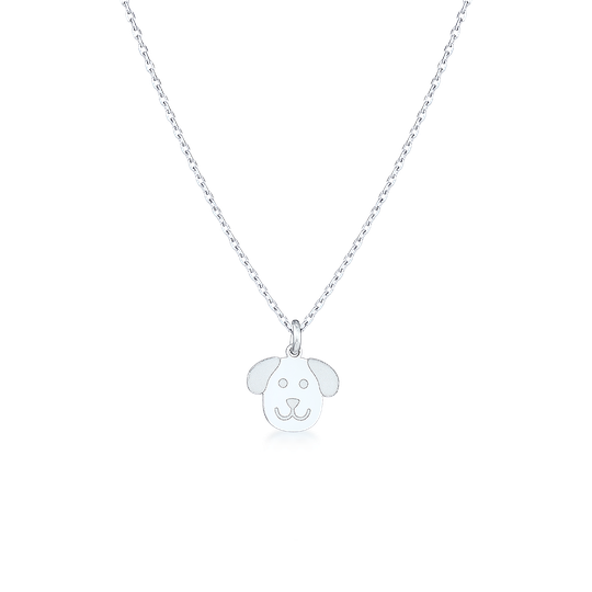 Colar de criança com medalha em forma de cão sorridente em prata. Para os verdadeiros amigos dos caninos.
