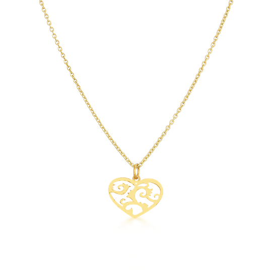 Colar em prata dourada com medalha em forma de coração com pormenores recortados. Fio ajustável.