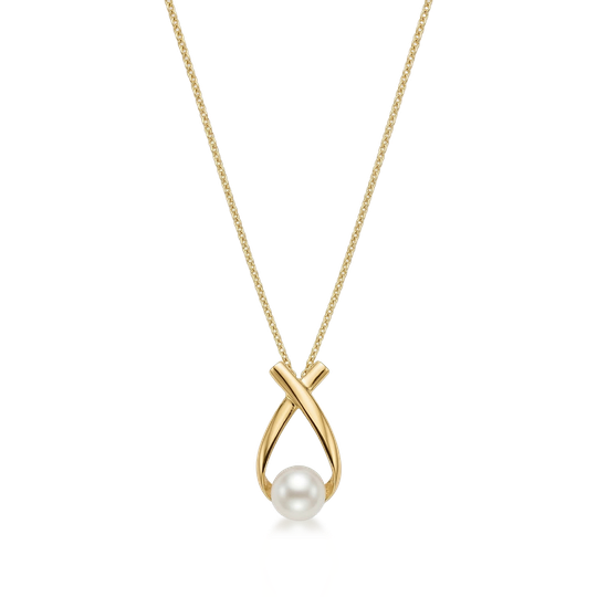 Colar em prata dourada com pendente de design cruzado e pérola de água doce. Um modelo delicado que combina elegância e modernidade.
