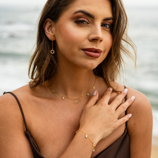 Essência – Uma coleção original Dlight. Inspirada no sol, no mar e na terra, traz jóias em prata dourada e pérolas de água doce que celebram a beleza natural em peças leves, luminosas e intemporais. Receba a sua jóia Dlight numa embalagem sustentável, com sementes de camomila para plantar e cuidar.
