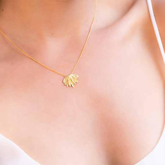 Colar em prata dourada com pendente em forma de asa. Fio ajustável.