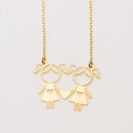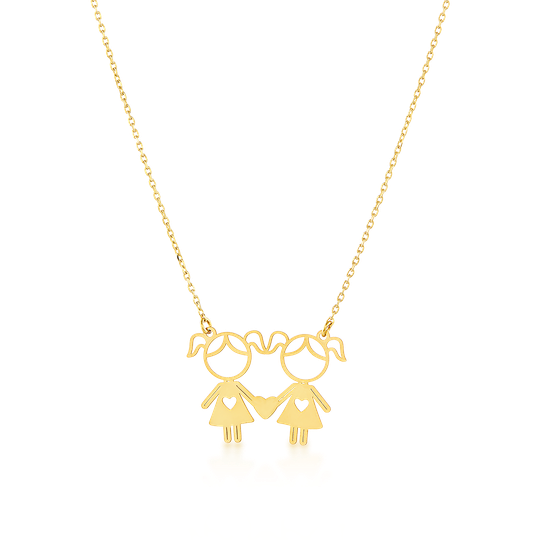 Colar em prata dourada com duas meninas recortadas. Colar ajustável. Adorável presente para mães, tias ou avós. Original e exclusivo Lugar da Jóia.