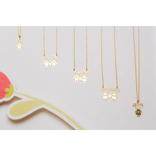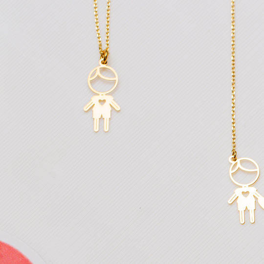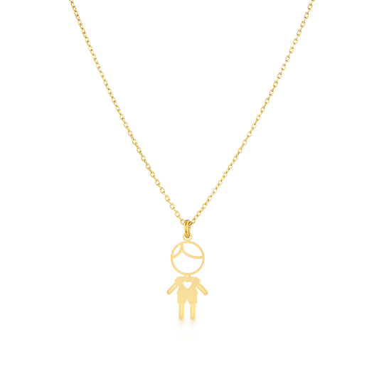 Colar em prata dourada com menino recortado. Colar ajustável. Adorável presente para mães, tias, avós ou madrinhas. Original e exclusivo Lugar da Jóia.
