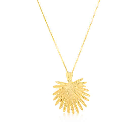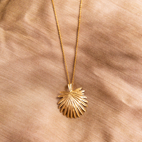 Colar em prata dourada com pendente em forma de palma. Colar ajustável.
