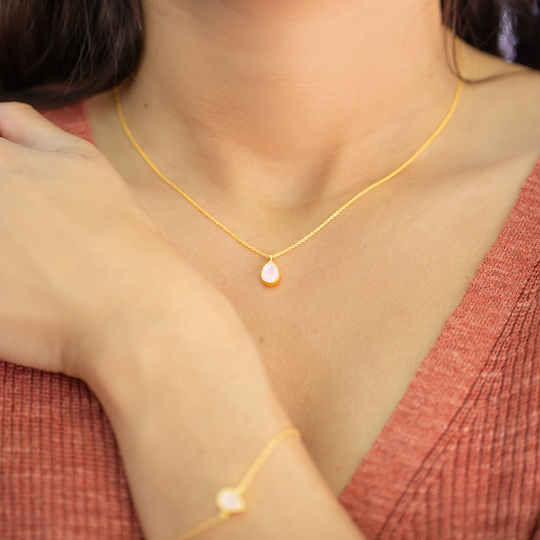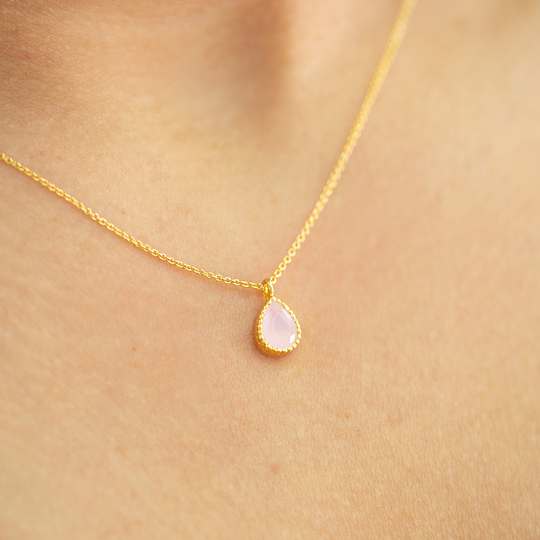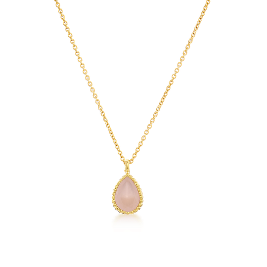 Colar em prata dourada com medalha em forma de gota com zircónia rosa doce. Fio ajustável para maior conforto e versatilidade. Calor a Cores é uma coleção de jóias de tons dourados e cores brilhantes.