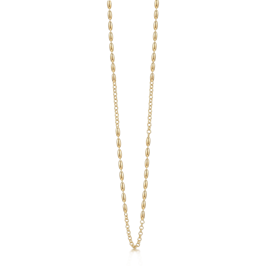 Colar em prata dourada com sequência de elos ovais que criam um efeito elegante e moderno. Um modelo versátil, perfeito para usar sozinho ou combinar com outros colares. Fio ajustável.