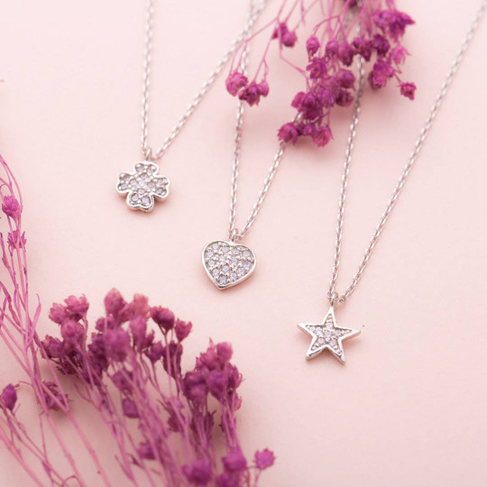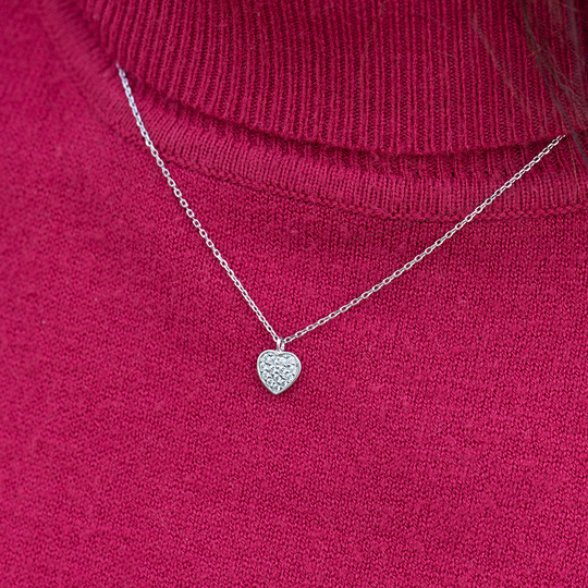 Colar em prata 925 com medalha em forma de coração com pequenas zircónias. Um colar de subtil versatilidade.