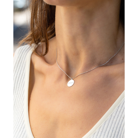 Colar em prata 925 com medalha redonda com cerca de 11 mm e fio ajustável. Personalize a sua jóia com nomes, datas ou palavras especiais, tornando-a única. Utilize o campo personalização para escrever o gravação pretendida (máximo de 8 caracteres). Envio em dois dias úteis.