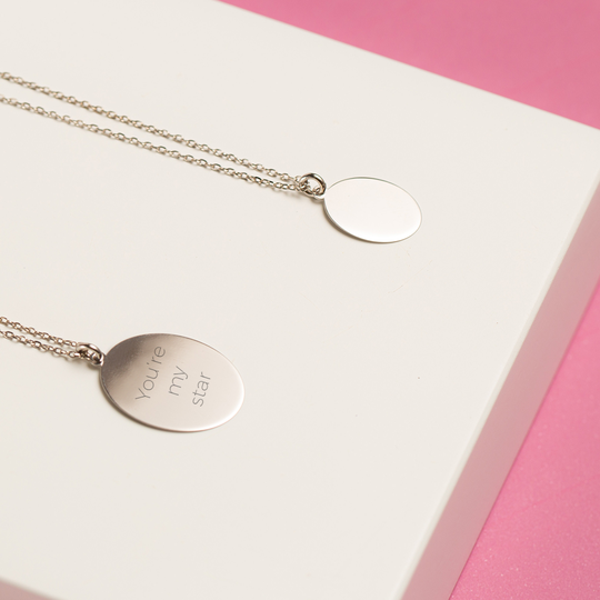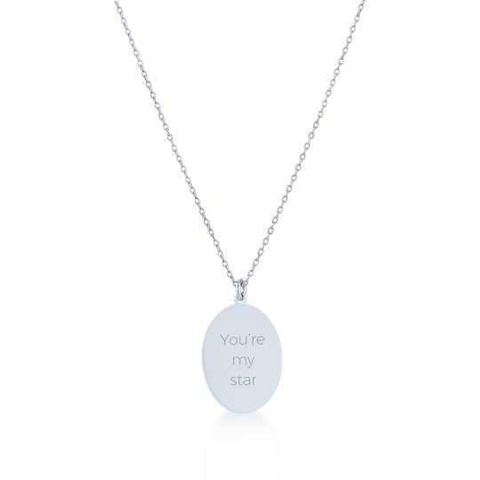 Colar em prata 925 com medalha em forma oval com cerca de 21 mm e fio ajustável. Personalize-o com nomes, datas ou palavras especiais, tornando-o única. Utilize o campo personalização para escrever o gravação pretendida (máximo de 14 caracteres). Envio em dois dias úteis.