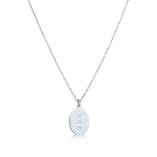 Colar em prata 925 com medalha em forma oval com cerca de 15 mm e fio ajustável. Personalize-o com nomes, datas ou palavras especiais, tornando-o única. Utilize o campo personalização para escrever o gravação pretendida (máximo de 8 caracteres). Envio em dois dias úteis.