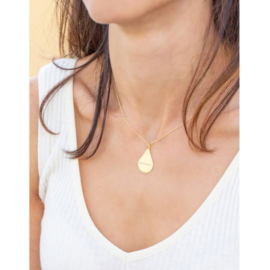 Colar em prata 925 com medalha em forma de gota com cerca de 20 mm e fio ajustável. Personalize-o com nomes, datas ou palavras especiais. Utilize o campo personalização para escrever o gravação pretendida (máximo de 14 caracteres). O envio é realizado no prazo de dois dias úteis.